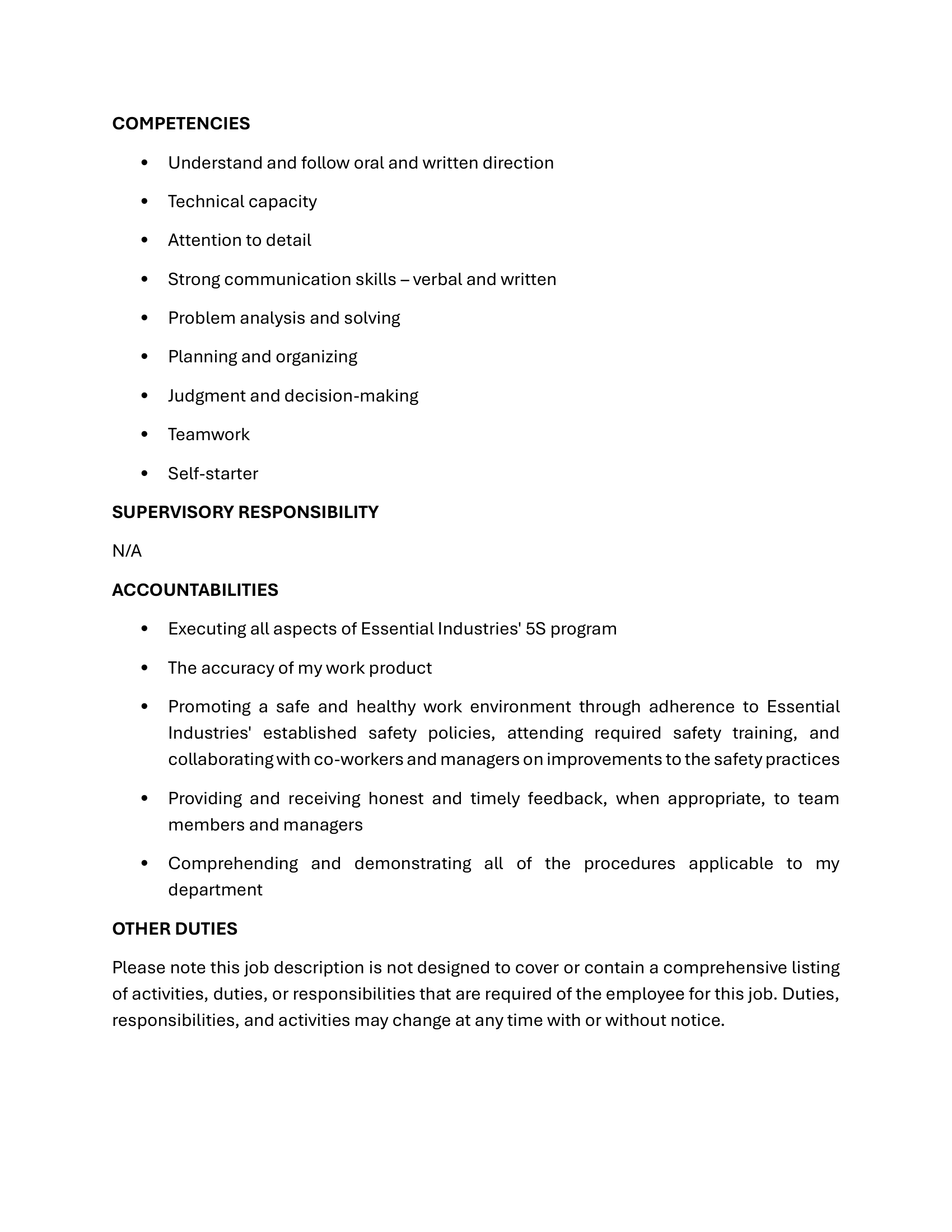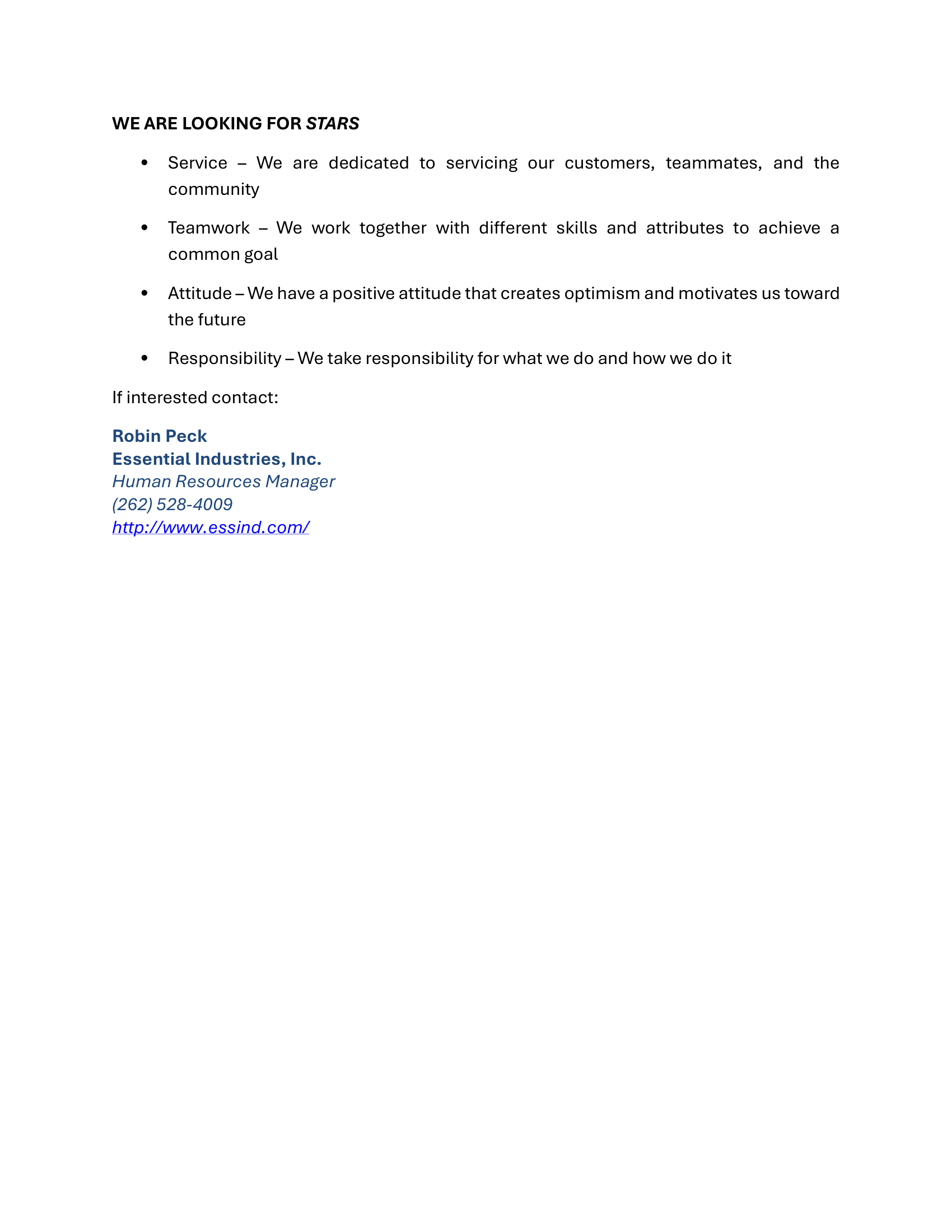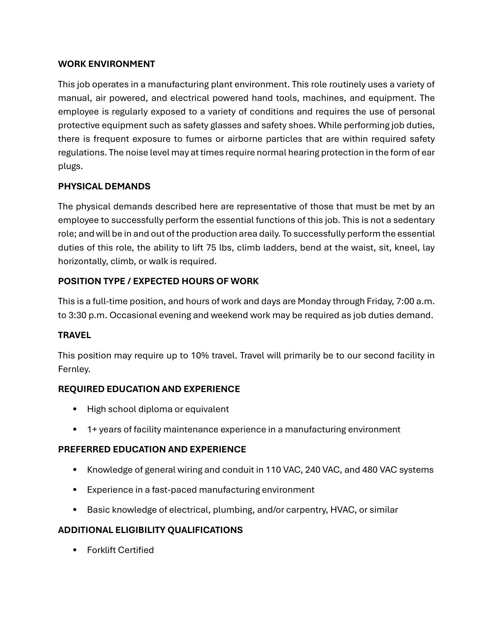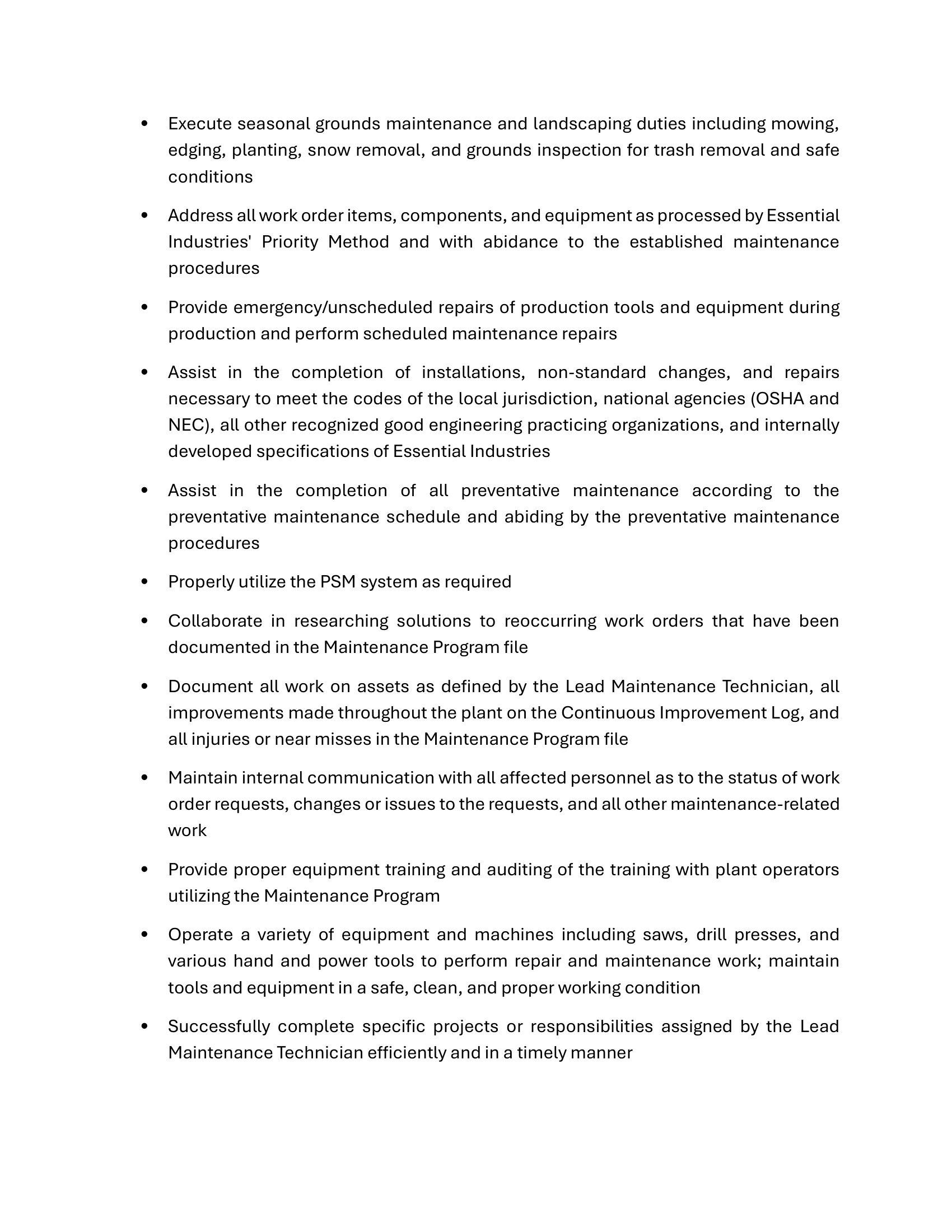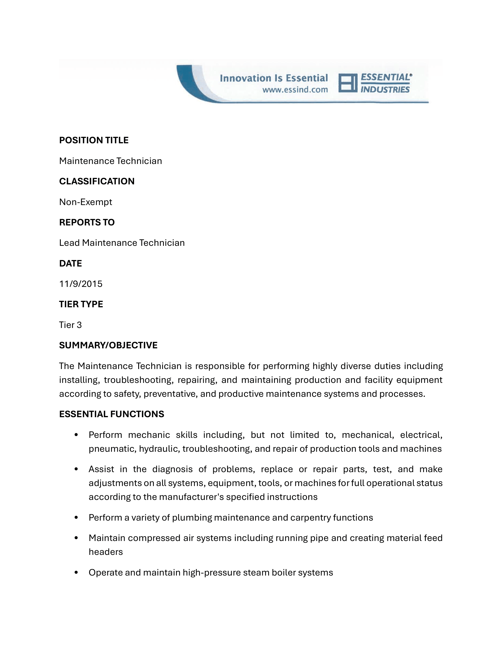 Maintenance Technician Job Announcement
